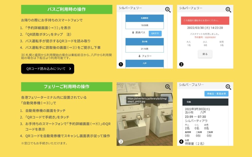 乗船手続きはサイト内のQRからでも、画面を見せることでも可能です。